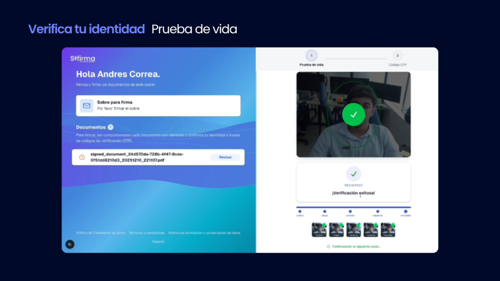 Confirma la identidad del firmante mediante prueba de vida en tiempo real